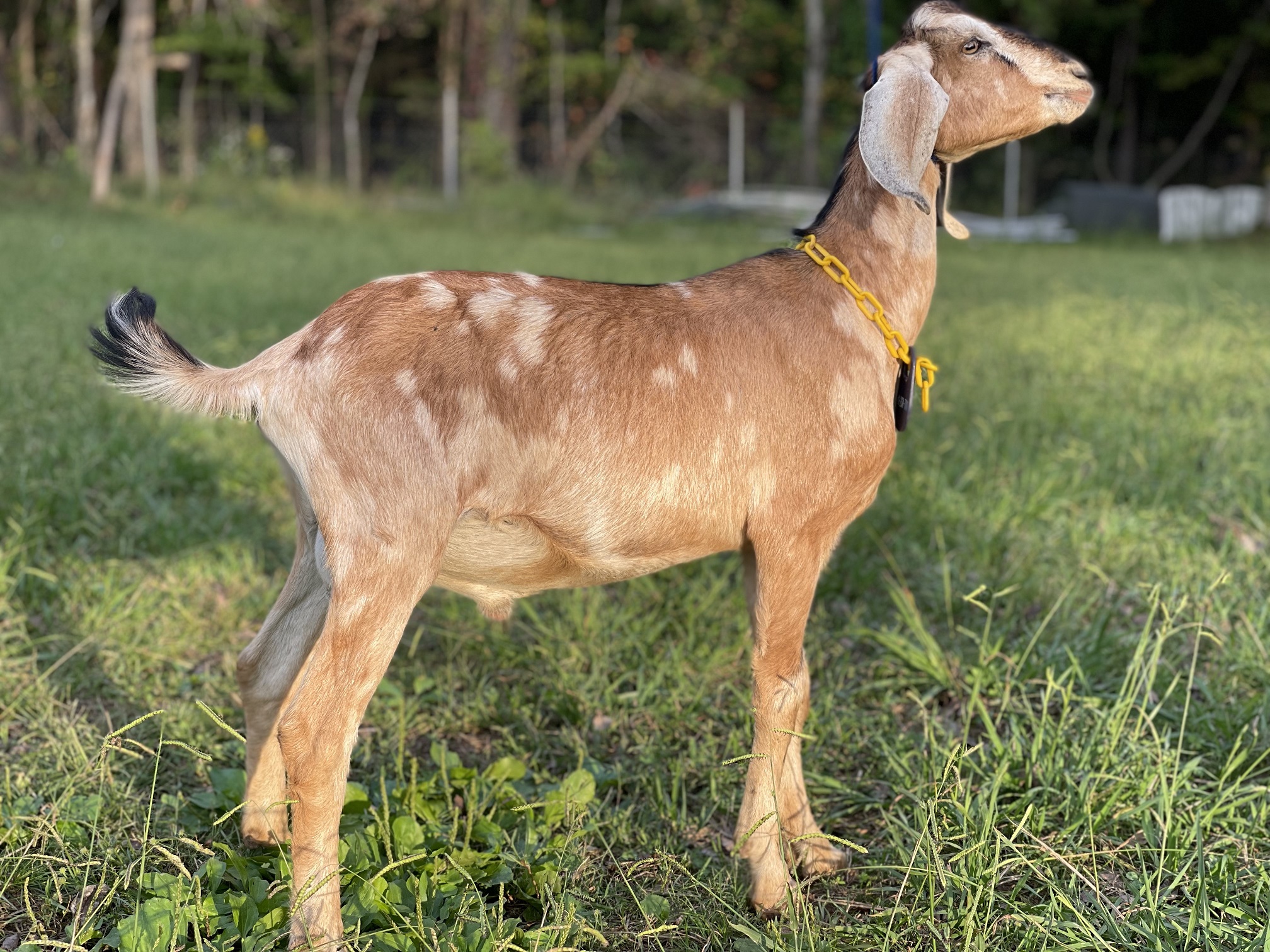 | A 2021 yearling, Ollie is a production addition from an excellent milking line full of Grand Champions and Ex90+ Dairy Goats. The nephew of SG Camelot Cattle Co Mischief 2*M ~Elite Doe and Top Ten Breed Leader in milk, protein and butterfat~ we expect great things from this fella as he imprints his solid milking genetics on future generations. | ||