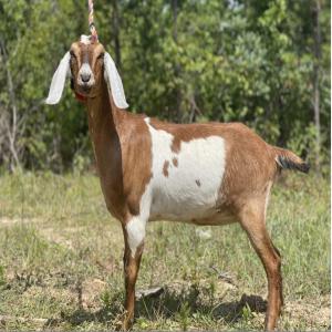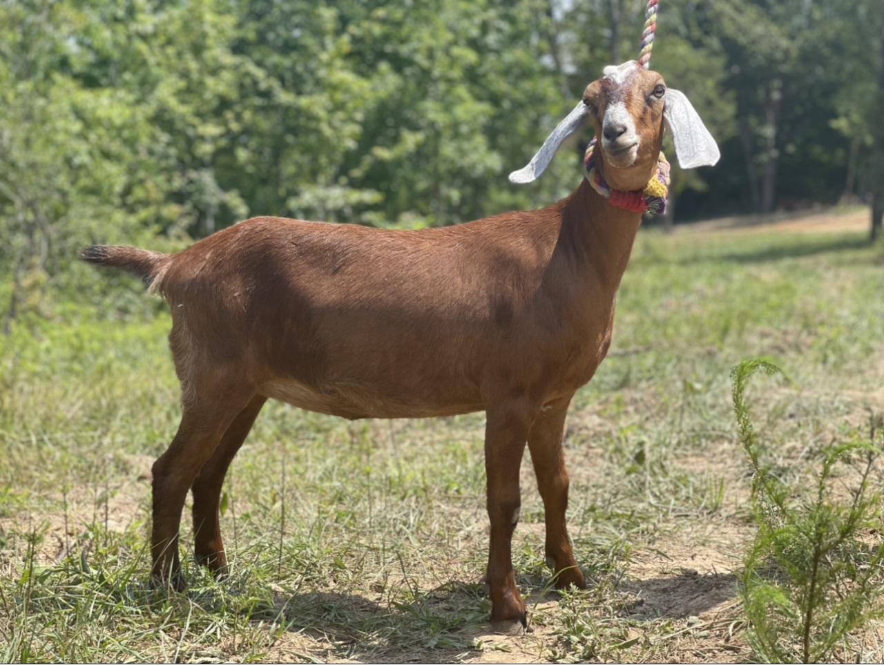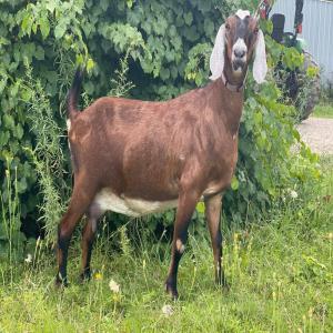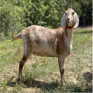 | Beautiful Red Goat, she brings solid milking lines and tight musculature to our lines, not overly masculine, but a thick goat with a hearty frame and solid structure. | ||